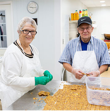 The current owners of Hall’s Candies, husband and wife duo Gary and Jeanne Andrews, purchased Hall’s Candies from the elder Halls in 2011. Serving as the chief candy maker, Gary can sometimes be found beginning the day’s work at the shop at 4 A.M., while Jeanne might be found packing orders, answering customer phone calls, and even adding a thoughtful touch of ‘home’ around the shop. Both are proud to be a part of their beloved family business and take much joy in sharing it with their children. They enjoy living in the country and sharing their now-empty nest with their Labrador Retriever, Sarge. In their free time, they enjoy watching Hallmark movies, taking countryside walks, and pouring themselves into their lifelong study of the Bible. With a sweet tooth that comes in waves, Jeanne can occasionally be found with a piece of Milk Chocolate-Covered Peanut Brittle in hand, while more discreetly, Gary might be caught with a crumb of Peanut Brittle lingering on his chin.