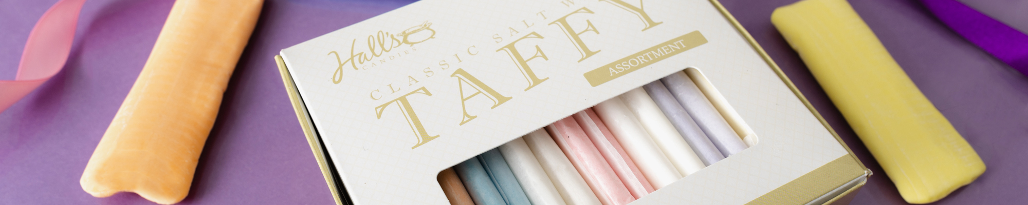 There’s just something special about saltwater taffy! Pulled on our old-fashioned taffy machine, our Taffy is available in 11 flavors: Assorted, Banana, Cinnamon, Creamsicle, Peppermint (limited time only), Strawberry, Tropical Splash, Tutti Frutti, Vanilla, Watermelon, and Wintergreen (limited time only). Satisfy your sweet tooth with this 1-lb box of candy and enjoy our unique, handcrafted flavors!